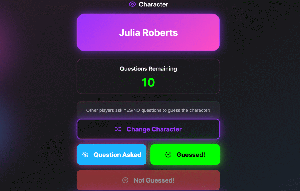 The others have up to 10 yes/no questions ❓ to figure out who it is.